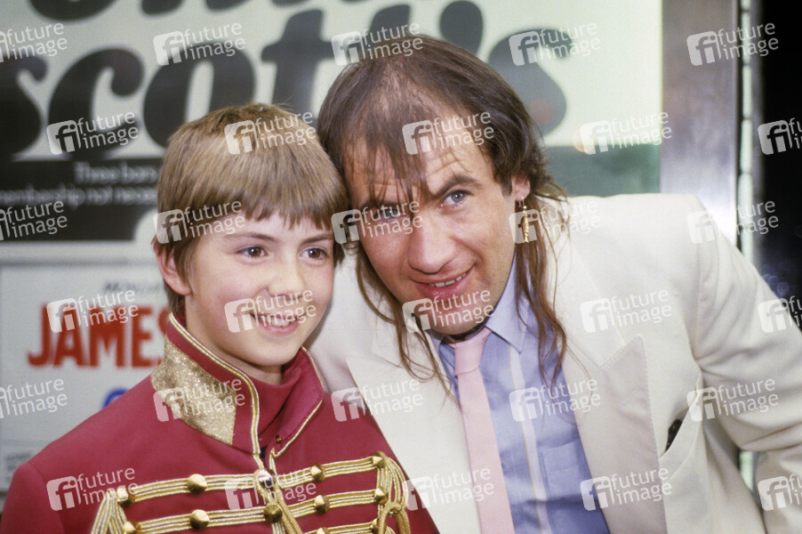 Fish mit LP-Cover-Model Robert Mead beim Photocall zum Release des Marillion Albums 'Misplaced Childhood' im Ronnie Scotts. London, 15.06.1985