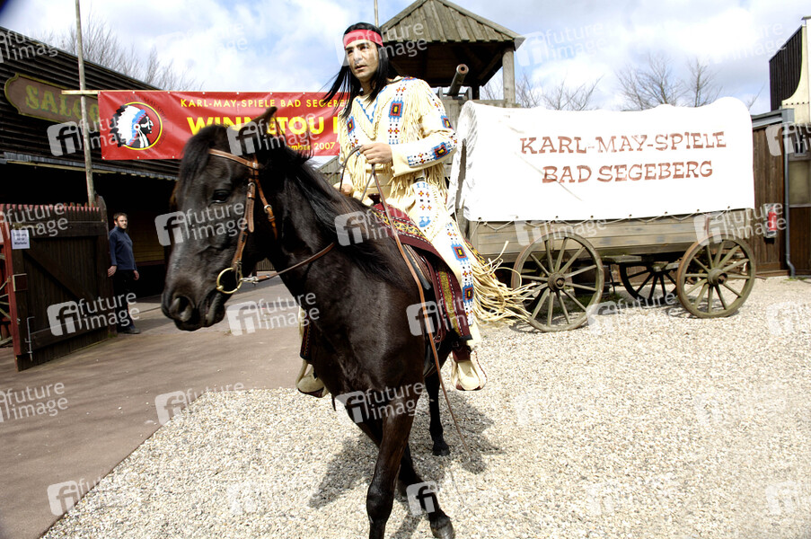 Pressetermin zu 'Winnetou I' der Karl May Freilichtspiele mit Erol Sander als Winnetou und Thorsten Nindel als Old Shatterhand im Indian Village, Bad Segeberg