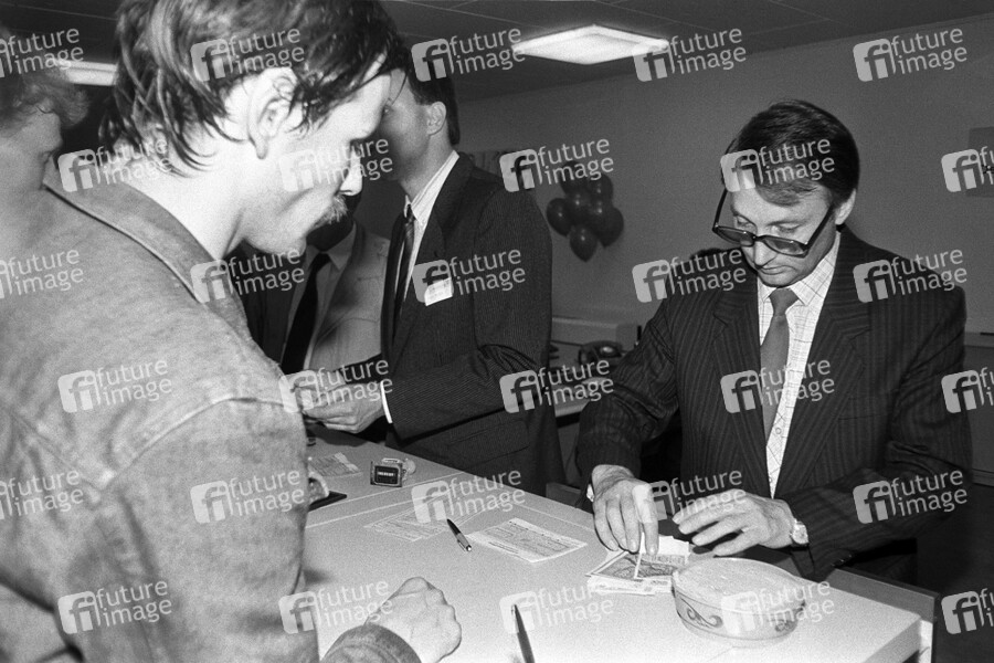 DDR, Deutsche Demokratische, Republik, Ostberlin, Wähungsunion, Sozialunion, Wirtschaft, Bank, Umtausch, D-Mark, Geldumtausch, Zeitgeschehen, Zeitgeschichte