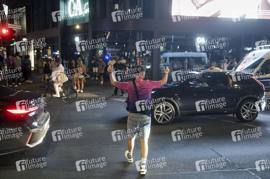 Deutsche Fans feiern den deutschen Sieg im Viertelfinale der Fußball-Europameisterschaft 2024 mit einem Autokorso auf dem Kurfürstendamm. Berlin, 29.06.2024