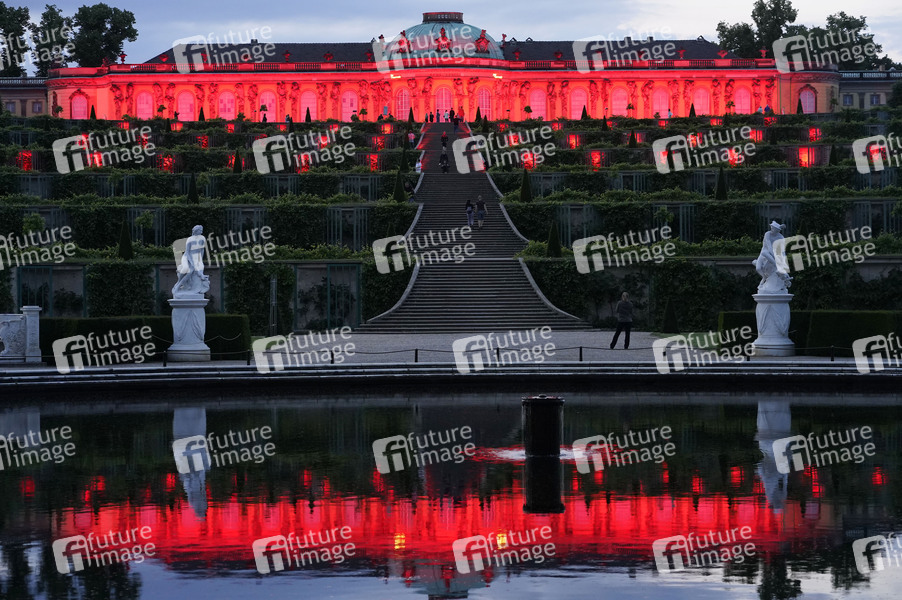 Beleuchtetes Schloss Sanssouci - Mit der bundesweiten Aktion 'Night of Light' macht die Veranstaltungsbranche auf ihre finanzielle Notlage durch die Corona-Krise aufmerksam. Potsdam, 22.06.2020