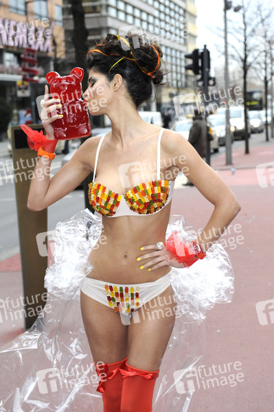 Micaela Schäfer präsentiert ihren persönlichen Berlinale Bären auf dem Boulevard der Stars, Berlin