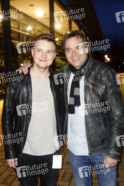 Toni Kraus mit Vater Thomas 'Rups' Unger nach der Aufzeichnung der MDR-Talkshow 'Riverboat' im Studio 3 der Media City Leipzig. Leipzig, 07.05.2021
