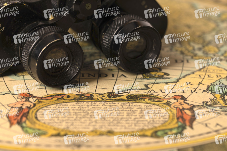 Unter Seefahrt versteht man das Befahren von Ozeanen und Meeren mit Schiffen und Booten. Im Bild ein Fernglas auf einer historischen Seekarte. (Symbolfoto, Themenfoto)