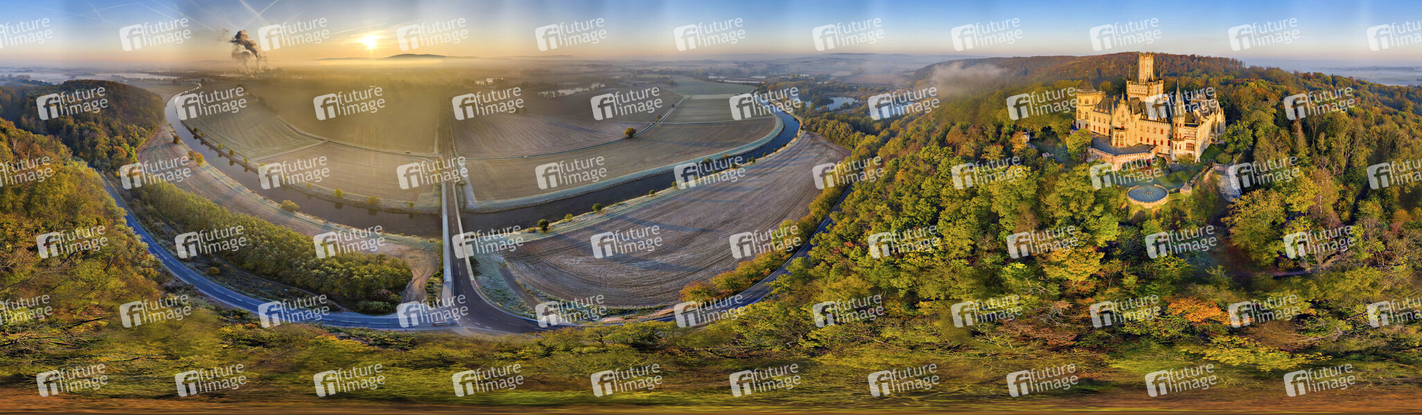 Luftbild vom Schloss Marienburg in Herbst auf dem Marienberg (Freigabe zur Veröffentlichung für Presse-und Öffentlichkeitsarbeit ist von Frau Annette Langhorst als Pressevertretung des Schloss Marienburg/EAC GmbH erteilt worden). Nordstemmen, 15.11.2019