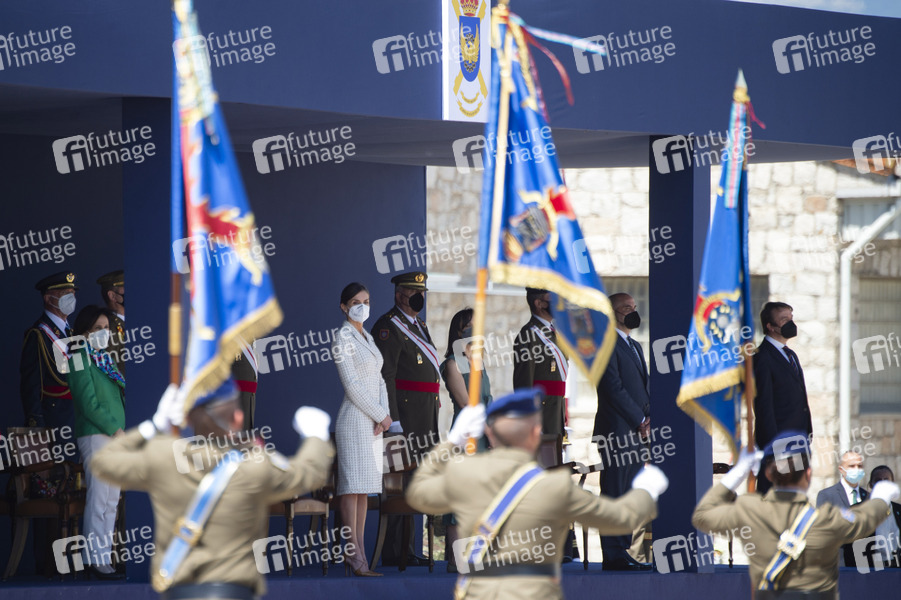 Königin Letizia von Spanien bei der Zeremonie der Übergabe der Nationalflagge an die ACAVIET (Luftfahrtakademie der Armee) in der Helipuerto Base Coronel Mate. Colmenar Viejo, 07.05.2021