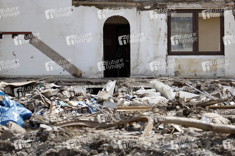 Nach dem Jahrhunderthochwasser in der Eifel durch heftige Regenfälle und Dauerregen mit Überschwemmungen und Überflutungen haben die Aufräumarbeiten im Ahrtal große Fortschritte gemacht. Einheiten von Polizei, THW, Bundeswehr und Feuerwehr mitsamt vielen freiwilligen Helfern haben Straßen geräumt, Schutt und Schlamm entfernt und die Menschen versorgt. Der Wiederaufbau wird trotzdem Jahre dauern. Im Bild Flutschäden in der Ortschaft Dernau, in der die Flut viele Häuser zerstörte, 30.07.2021