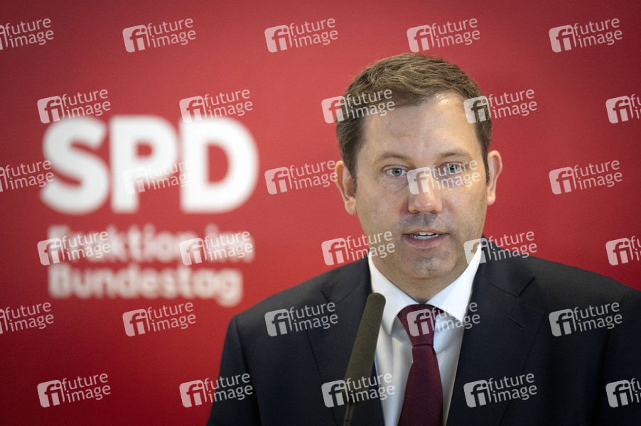 Lars Klingbeil beim Pressestatement nach der Fraktionssitzung der SPD-Bundestagsfraktion im Reichstagsgebäude. Berlin, 26.02.2025