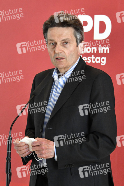 Rolf Mützenich bei einem Pressestatement der SPD vor der Fraktionssitzung auf der Fraktionsebene im Reichstagsgebäude. Berlin, 04.05.2021