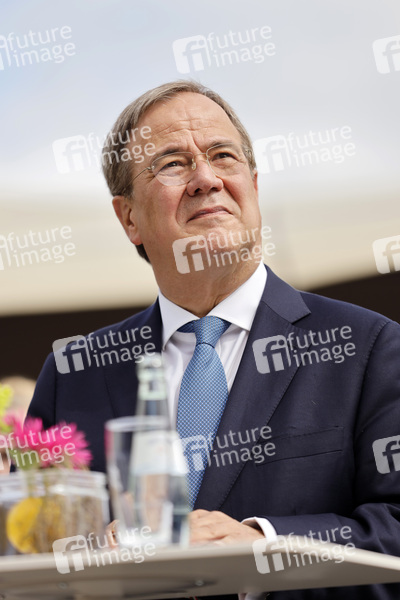 Armin Laschet bei der Inbetriebnahme das Pumpwerks Oberhausen und damit des gesamten Abwasserkanals Emscher. Bis Ende 2021 wird die Emscher sukzessive von ihrer Schmutzfracht befreit. Oberhausen, 20.08.2021
