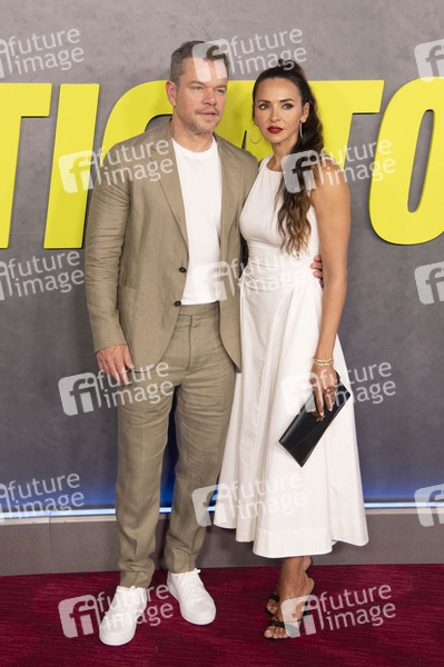 Matt Damon mit Ehefrau Luciana Barroso bei der Premiere des Apple TV+ Films 'The Instigators' im Jazz at Lincoln Center. New York, 31.07.2024
