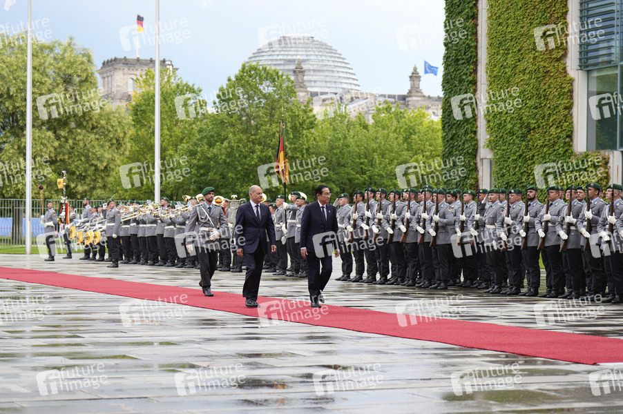 Olaf Scholz und Fumio Kishida beim Empfang des Premierministers von Japan mit militärischen Ehren und zu einem gemeinsamen Gespräch mit anschließendem Pressestatement im Bundeskanzleramt. Berlin, 12.07.2024
