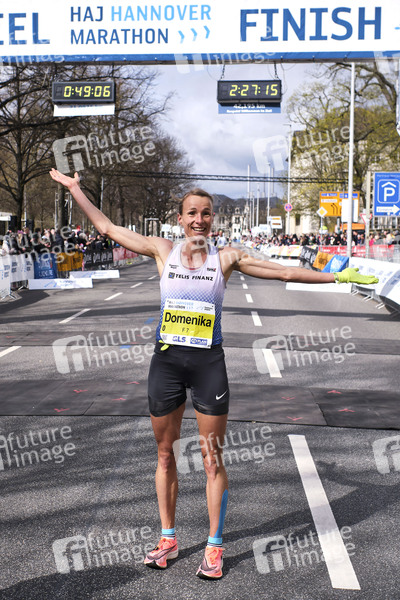 Domenika Mayer (1. Platz) beim 30. HAJ Marathon. Hannover, 03.04.2022