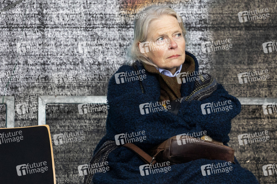 Corinna Kirchhoff auf der umstrittenen Friedensdemo und Kundgebung für Verhandlungen mit Russland statt Waffenlieferungen für die Ukraine am Brandenburger Tor. Dazu aufgerufen haben die Linken-Politikerin Sahra Wagenknecht und die Frauenrechtlerin Alice Schwarzer. Berlin, 25.02.2023