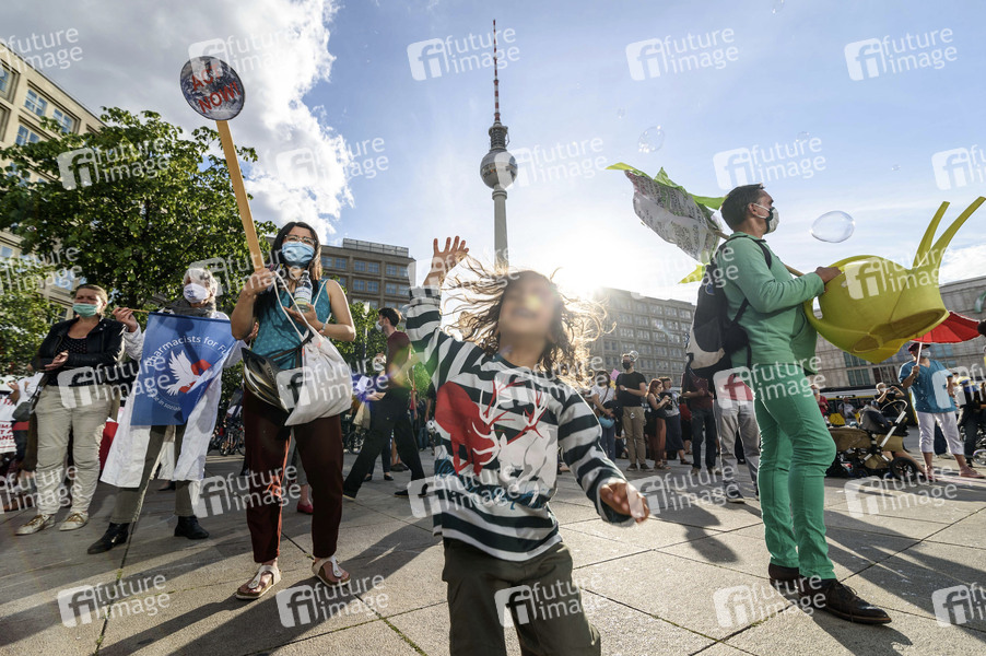 Berlin4Future - Kundgebung für mehr Klimaschutz am Berliner Alexanderplatz. Die Bewegung Berin4Future sieht sich als Pendant der Bewegung Fridays For Future für Erwachsene und Berufstätige. Auch sie fordern die Einhaltung des Pariser Klimaschutzabkommens und den Kohleausstieg. Berlin, 03.08.2020