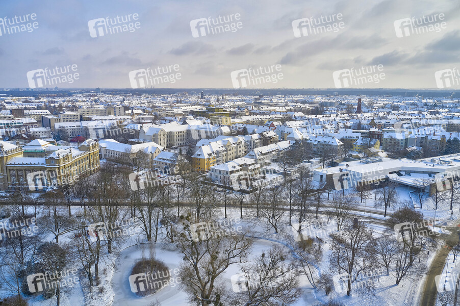 Luftbild vom verschneiten Maschpark im Winter. (Der Drohnenflug wurde ordnungsgemäß bei der Polizei Leitstelle Hannover angemeldet) Hannover, 09.02.2021