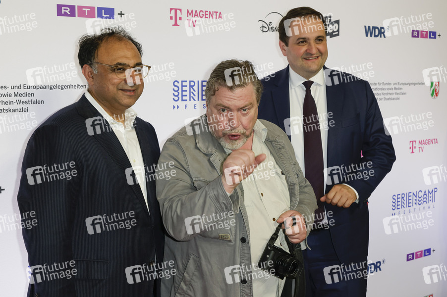 Walid Nakschbandi, Armin Rohde und Nathanael Liminski bei der Eröffnung des 11. Seriencamp Festival 2025 mit der Premiere der ARD/ORF Miniserie 'Hundertdreizehn' im Cinenova Kino. Köln, 03.06.2025