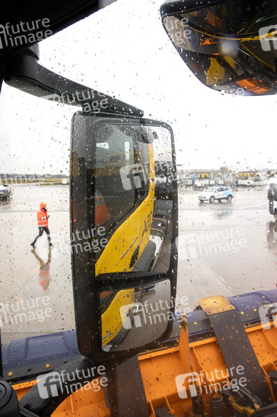 Im Schneeräumfahzeug beim Presse-Fototermin zum Winter-Fuhrpark des Flughafens Köln Bonn Airport. Köln, 11.12.2019