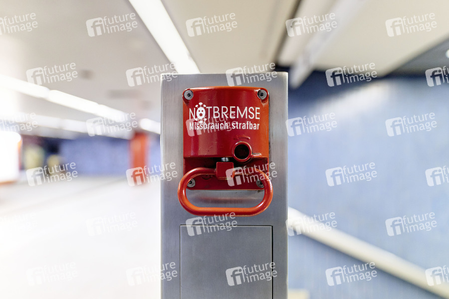 Fotomontage: Eine Notbremse mit einem Corona-Symbol. NRW: Das Ministerium für Arbeit, Gesundheit und Soziales hat auf Grundlage der neuen Coronaschutzverordnung die Corona-Notbremse für 31 Kreise und kreisfreie Städte angeordnet. Im Bild eine Notbremse an der Haltestelle Köln HBF. (Fotomontage, Themenbild, Symbolbild) Köln, 27.03.2021