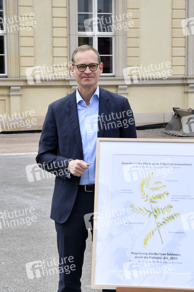 Michael Müller bei der symbolischen Entgegennahme einer Baumspende für das Umfeld des Humboldt Forums auf der Baustelle vom Berliner Schloss. Berlin, 18.05.2020