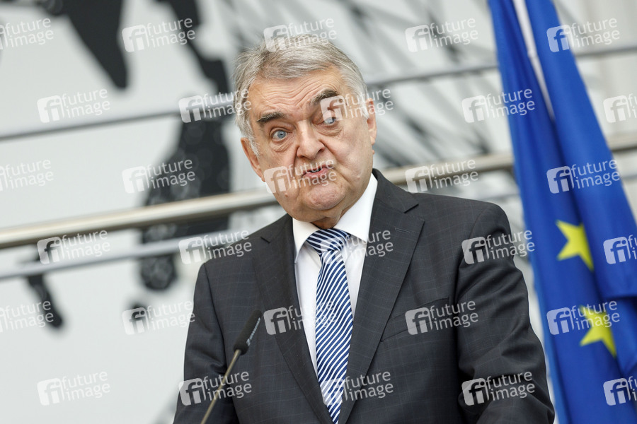 Herbert Reul bei der Pressekonferenz zum Gefährdungslage der Synagoge in Hagen nach Austausch mit den Sicherheitsbehoerden im LKA in Düsseldorf. Düsseldorf, 21.09.2021
