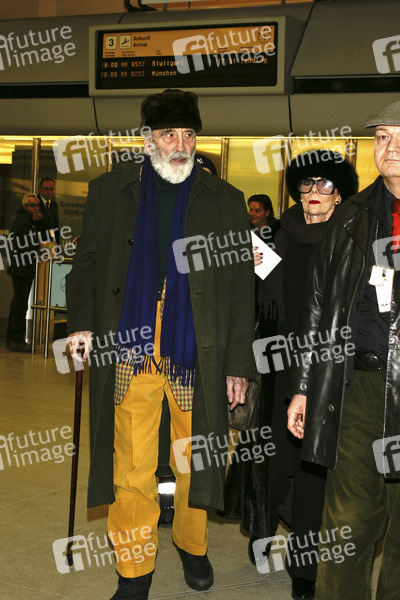 Ankunft von Christopher Lee und Gattin Gitte am Flughafen Tegel, Berlin