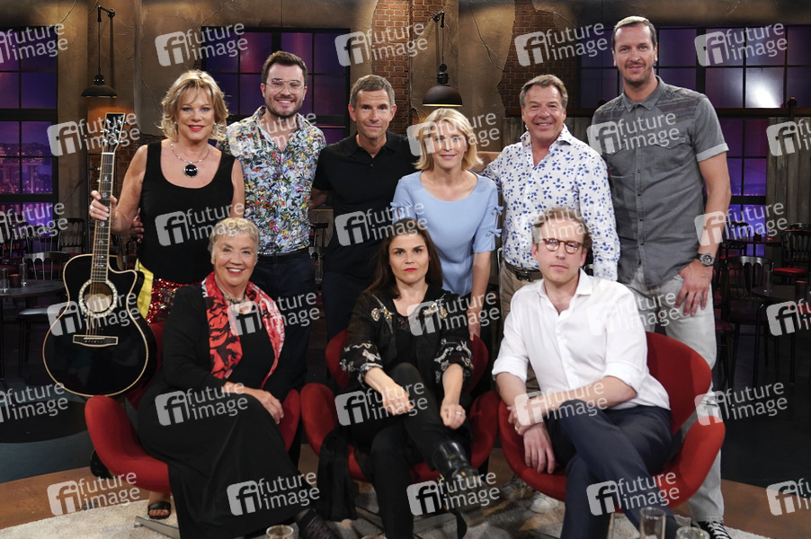 Lisa Fitz, Sabine Wackernagel, Sebastian Klussmann, Micky Beisenherz, Katharina Wackernagel, Susan Link, Patrick Lindner, Johann König und Pascal Hens bei der Aufzeichnung der WDR-Talkshow 'Kölner Treff' im WDR Studio BS 2. Köln, 28.06.2019