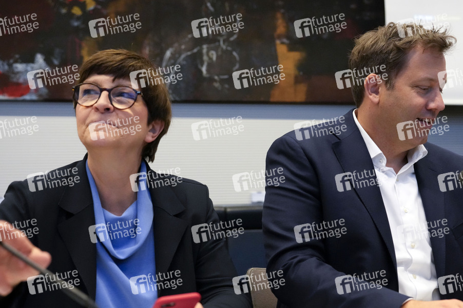 Saskia Esken und Lars Klingbeil bei der Fraktionssitzung der SPD-Bundestagsfraktion im Reichstagsgebäude. Berlin, 12.11.2024
