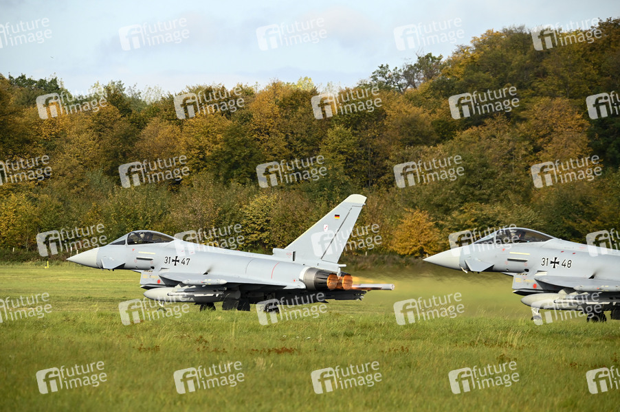 Eurofighter beim Start während des Besuchs der Bundesverteidigungsministerin Annegret Kramp-Karrenbauer beim Taktischen Luftwaffengeschwader 31 'Boelcke'. Nörvenich, 27.09.2019