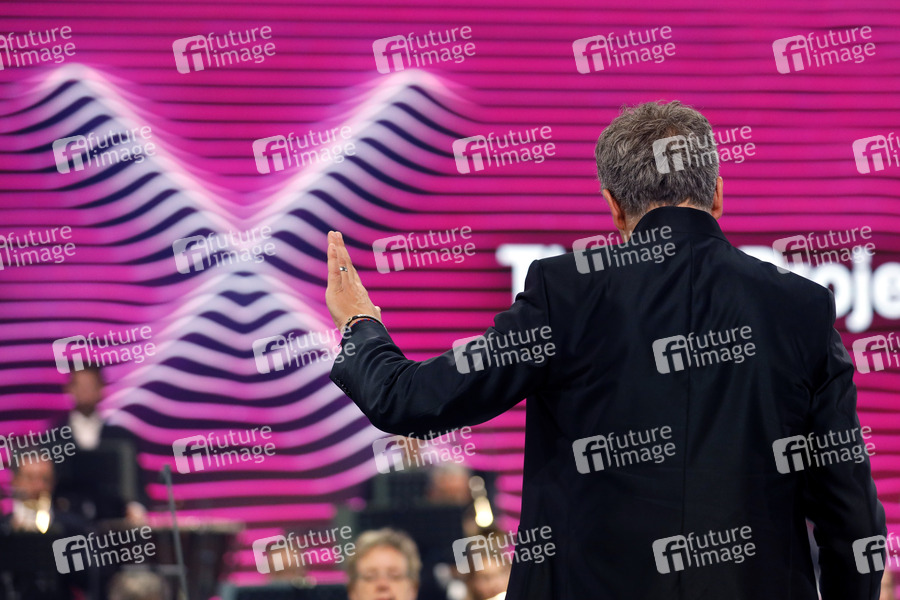Dirk Kaftan bei der Generalprobe des Beethoven Orchester Bonn für die von einer KI vollendete 10. Sinfonie Beethovens vor der abendlichen Uraufführung im Telekom Forum. Bonn, 09.10.2021