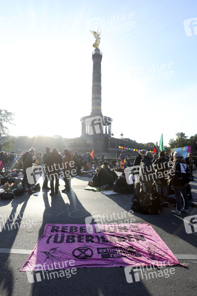 Aktivisten der Umweltschutzgruppe Extinction Rebellion starten eine Protestaktion für mehr Klimaschutz. Hunderte Anhänger besetzen kurz vor Beginn des Berufsverkehrs den Großen Stern, einen der großen Verkehrsknotenpunkte der Hauptstadt. Berlin, 07.10.2019