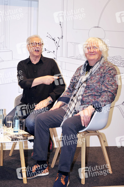 Gerd Christian und Wolfgang Martin beim Talk zum Buch 'Sagte mal ein Dichter. Holger Biege. Die Biografie' auf der Leipziger Buchmesse 2019 in der LVZ-Autorenarena. Leipzig, 23.03.2019