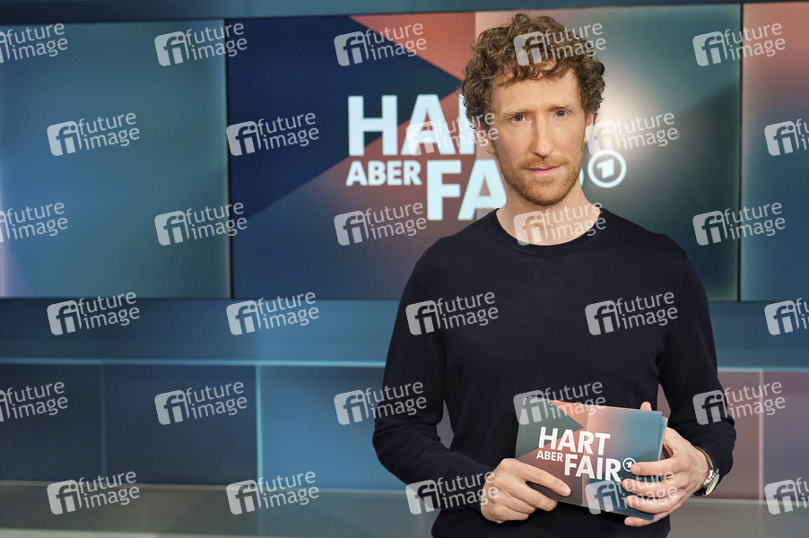 Louis Klamroth in der ARD-Talkshow 'hart aber fair' im WDR Fernsehstudio B. Köln, 28.04.2025