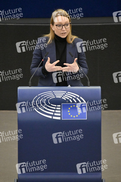 Aurore Lalucq bei einer Plenartagung zur Mindestbesteuerungsrichtlinie im Plenarsaal des Europäischen Parlaments. Straßburg, 04.04.2022