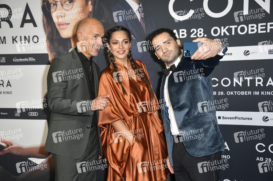 Christoph Maria Herbst, Nilam Farooq und Hassan Akkouch bei der Premiere des Kinofilms 'Contra' im Zoo Palast. Berlin, 27.10.2021