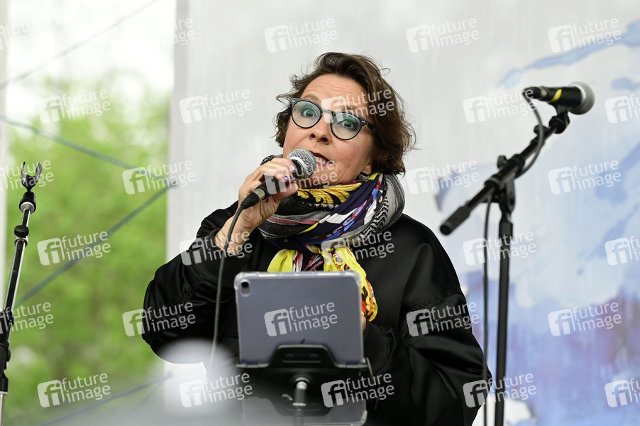 Alexa Rodrian bei einer 'Friedensprozession' am Karfreitag unter dem Motto 'Frieden kennt keine Brandmauern' auf dem Postplatz. Dresden, 18.04.2025