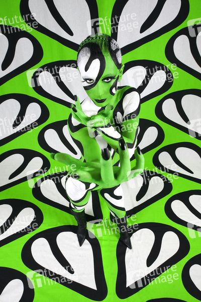 Bodypainting, Stoffdesign Anna Efverlund, Erotik, Frau, nackt, drinnen, weiblich, Muster, Chamäleon, erotic, woman, nude, indoor, female, chameleon