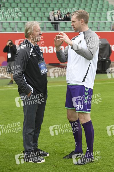 Horst Hrubesch und Per Mertesacker beim Benefiz-Fußballspiel 'Kicken mit Stars' im Eilenriedestadion. Hannover, 25.05.2025