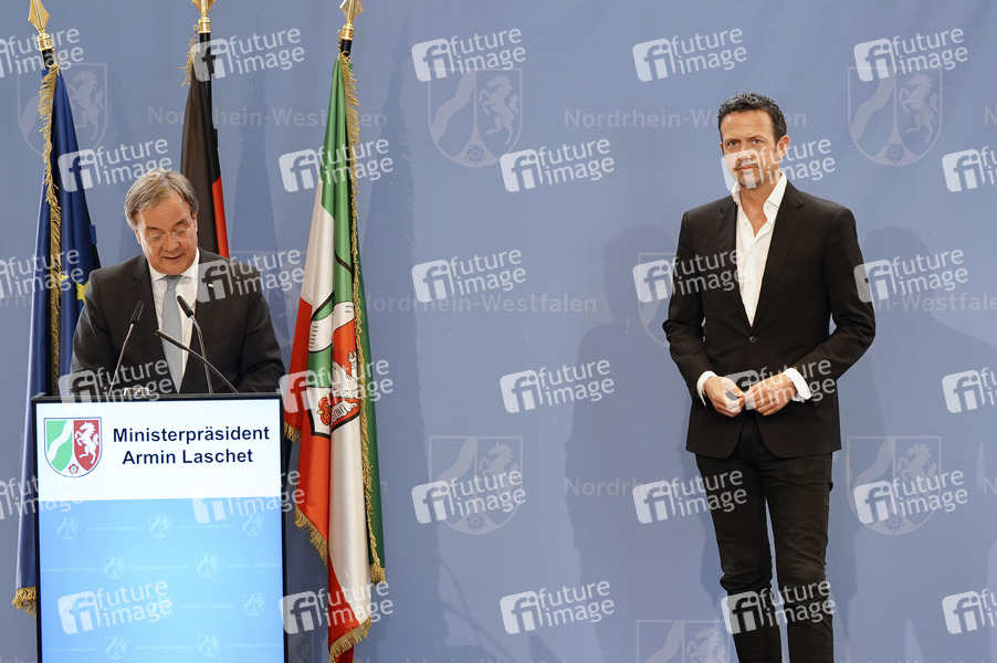Armin Laschet und Till Brönner bei der Verleihung der Verdienstorden des Landes Nordrhein-Westfalen im Präsidentenschlösschen. Düsseldorf, 14.05.2019