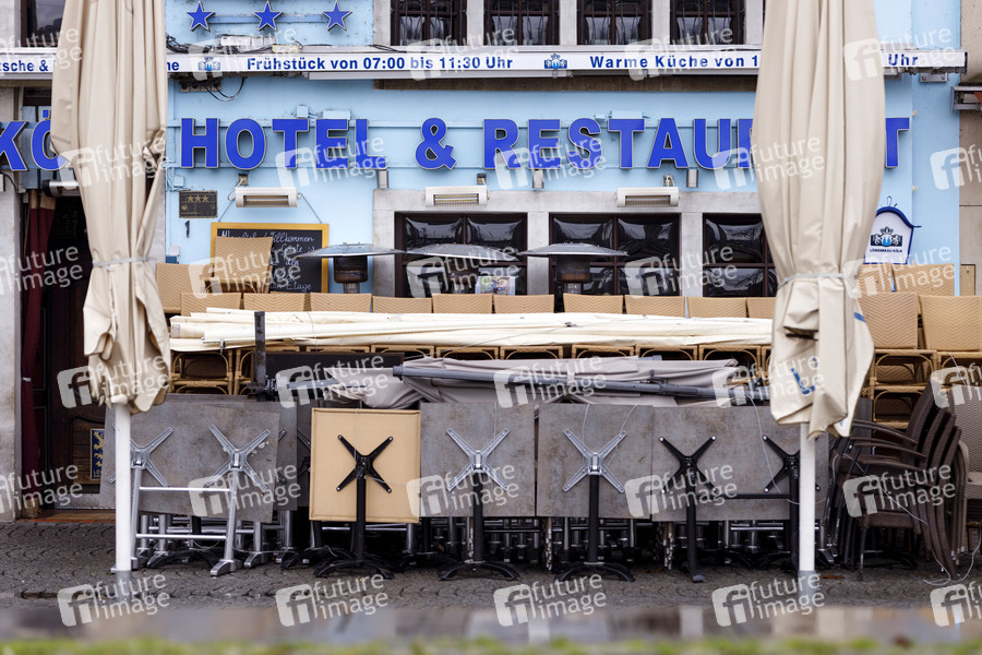Der Lockdown aufgrund der Coronakrise trifft die Kneipen, Restaurants und Hotels in der Kölner Altstadt hart. Im Bild ein Hotel Restaurant am Rheinufer. (Themenbild, Symbolbild) Köln, 10.01.2021