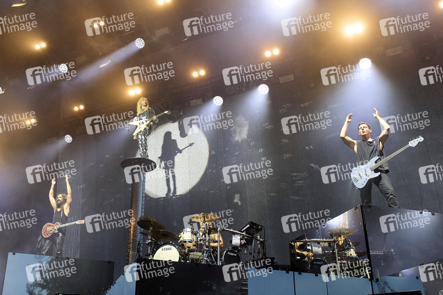 Tom Kaulitz, Bill Kaulitz, Gustav Schäfer und Georg Listing von Tokio Hotel live auf dem Summerdays Festival bei den Quaianlagen am Bodensee. Arbon, 31.08.2024