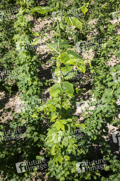 Hopfenstauden am Hopfenpfad beim Fototermin am Hopfengut No20. Tettnang, 07.07.2020