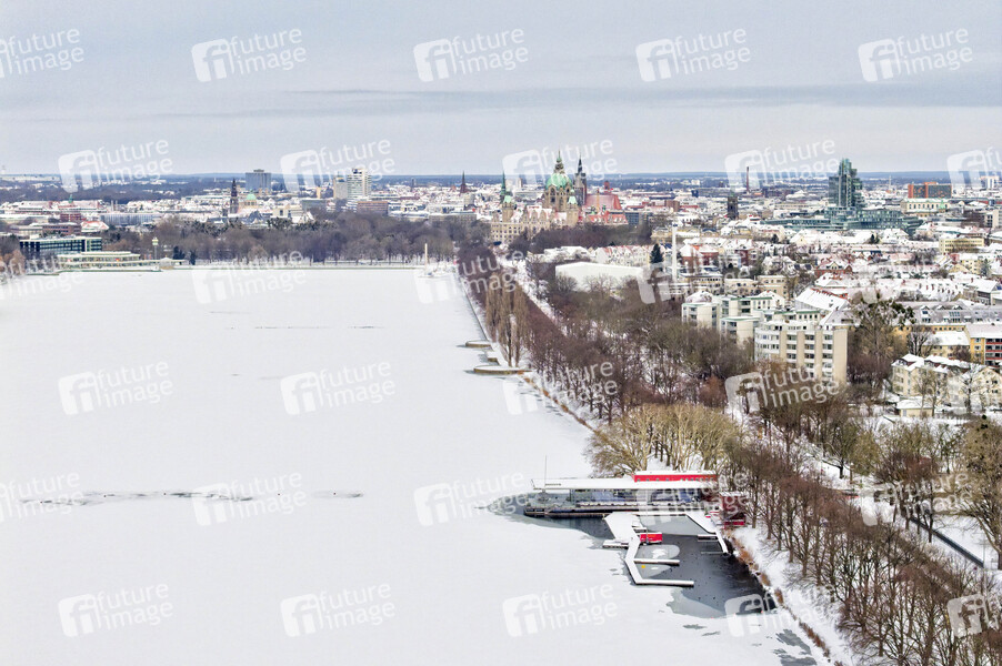 Luftbild vom Maschsee im Winter nach dem Sturmtief Elli. Hannover, 10.01.2026