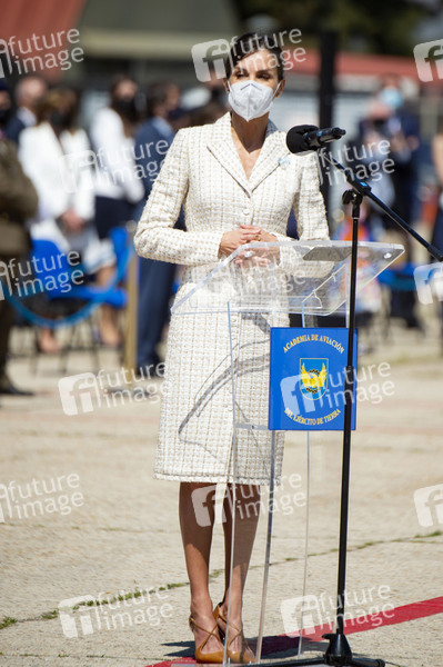 Königin Letizia von Spanien bei der Zeremonie der Übergabe der Nationalflagge an die ACAVIET (Luftfahrtakademie der Armee) in der Helipuerto Base Coronel Mate. Colmenar Viejo, 07.05.2021