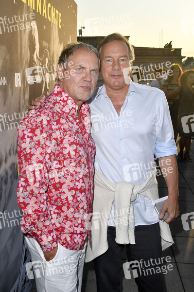 Uwe Ochsenknecht und Nico Hofmann beim Vorab-Empfang UFA Filmnächte 2019 auf der Dachterrasse der Bertelsmann-Repräsentanz. Berlin, 21.08.2019