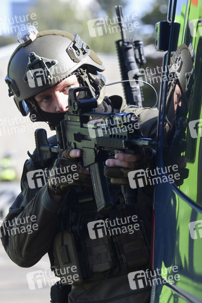 Anschlag, Terror, Gewalt, Geiselnahme, Bus, Verkehr, Sicherheit, Übung, Polzeit, Polizeieinsatz, Schutz, Prävention, Anti-Terror-Einheit, Spezialkrafte, SEK, Geiselnehmer, Terrorist, Symbolbild, Symbolfoto, Themenbild