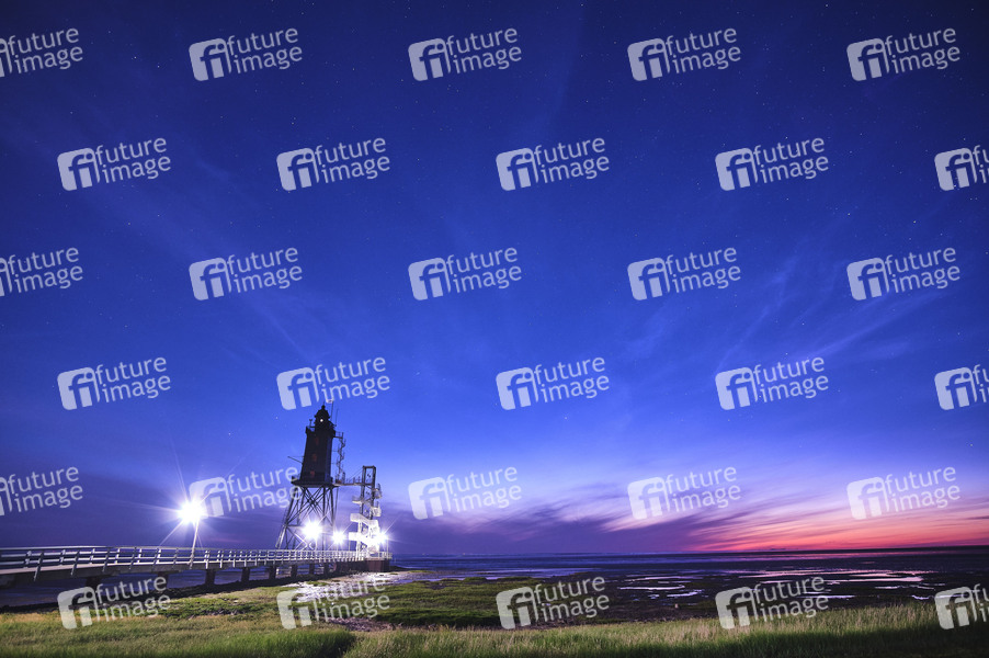 Eversand-Oberfeuer, Turm, Höhe 37.4 m, Gitterkonstruktion, runde Laterne, Sedhenswürdigkeit, Befeuerung, Schifffahrtszeichen, Positionsbestimmung, Nacht, Nachtaufnahme, Sternenhimmel