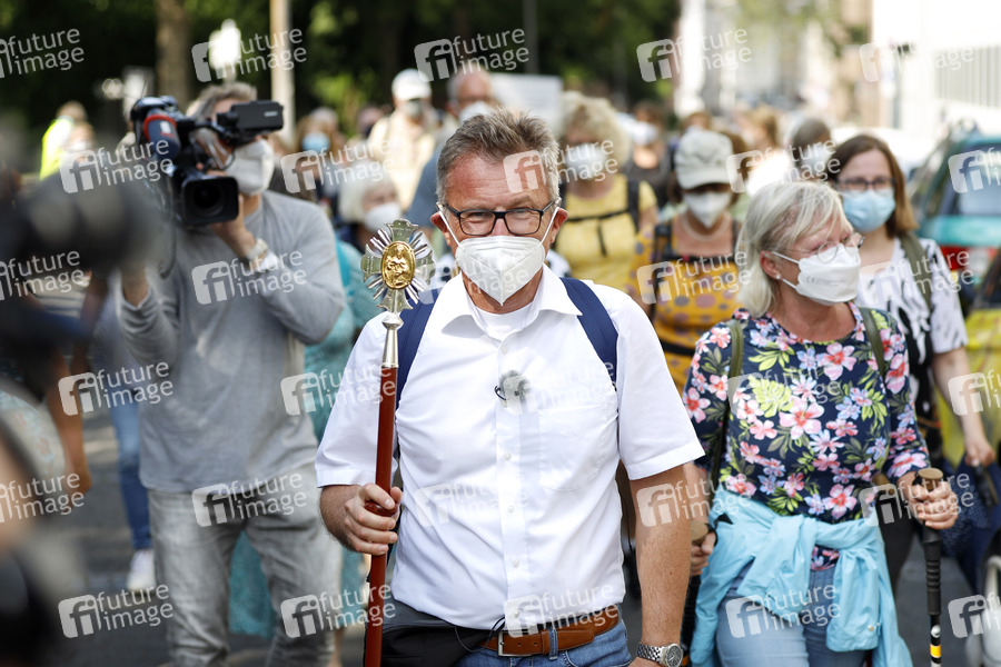 Pfarrer, Geistlicher, Woelki-Kritiker, Gottesmann, Demo, Demonstration, Pilger, Pilgermarsch, Protestmarsch, Aufbruch nach Köln, Maria 2.0, Aktivisten, Kirche, Gläubige, Christen, Erzbistum Köln, Kundgebung, Protest gegen Woelki, Missbrauch, Missbrauchskandal, Forderungen, Aufarbeitung