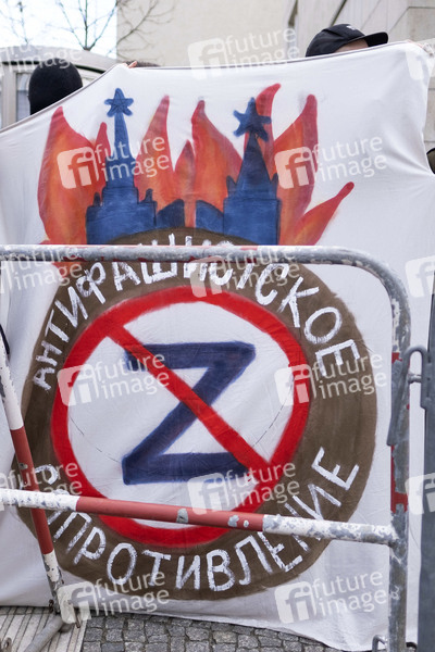 Protest gegen die Wiederwahl des russischen Präsidenten Vladimir Putin unter dem Motto 'Schluss mit Putin, mit Krieg, Lüge und Repressionen' vor der Russischen Botschaft. Berlin, 17.03.2024