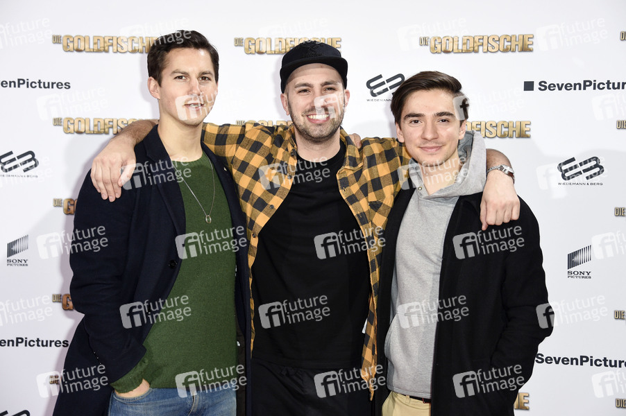 Tim Oliver Schultz, Dominik Porschen und Ivo Kortlang beim Special Screening des Kinofilms 'Die Goldfische' im UCI Luxe Mercedes Platz. Berlin, 18.03.2019
